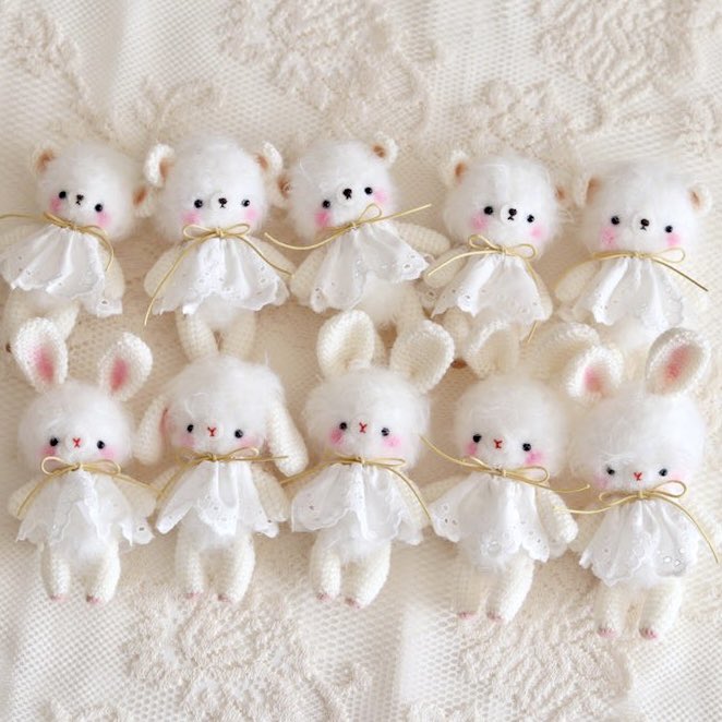 #初夏の創作クラスタフォロー祭り ホワホワなあみぐるみや、ぬいぐるみ、小さなクマなどホンワカしていただけるような子たちを作っています(。•ᴗ•。)♡ フォローしていただけたら嬉しいです✩⋆。˚