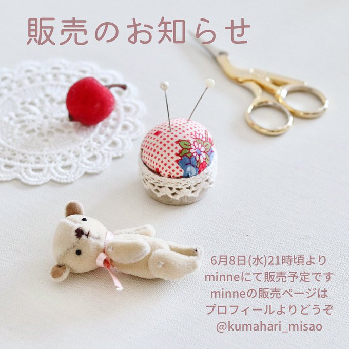 #6月になったのでフォロワーさんに自己紹介しようぜ フワフワ、モフモフなあみぐるみやぬいぐるみ、小さなクマ、うさぎなどをマイペースに作っております♡ 販売▶minne.com/@kumahari Instagramもフォローしていただけたら嬉しいです😊 instagram.com/kumahari_misao