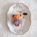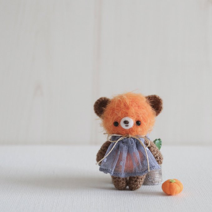 ハロウィンをイメージして作った小さなクマさん🐻🎃 お顔とボディはもしゃもしゃの毛糸で編んでいます✩⋆。˚ instagram.com/kumahari_misao #あみぐるみ #ぬいぐるみ