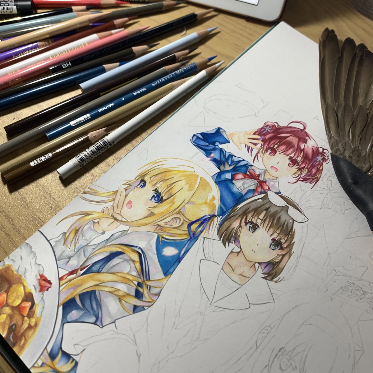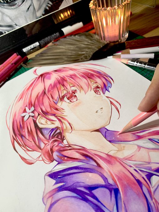 大学のレポート提出及び、テスト期間のためTwitter少し離れてたけどフォロワーあと少しで700人だ!💩 RT徘徊しまーす✋ #絵描きさんと繋がりたい #模写 #色鉛筆 #絵柄好みって人にフォローされたい