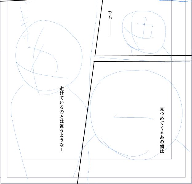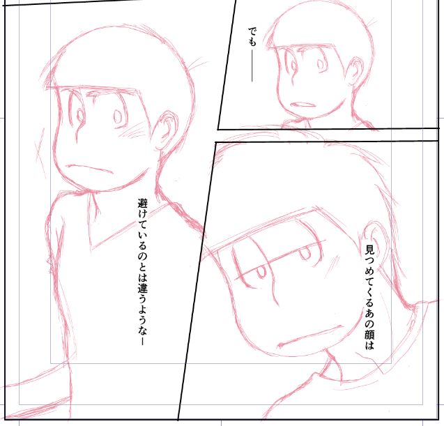 #このタグを見た人はラフ画とその完成絵を見せる 次の新刊のとあるページ。 最初がラフにすらなってない😅 そして、これすらもしないで下書きからがほとんど💦