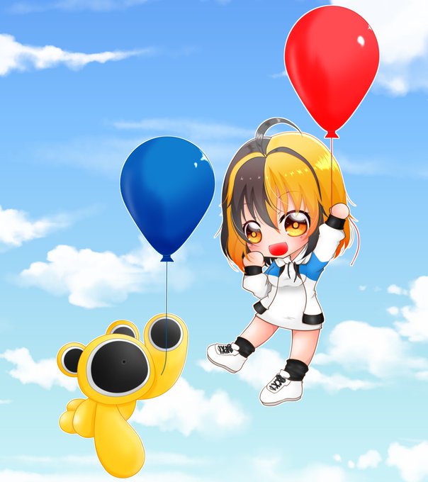 去年も自分の誕生日に璃音ちゃん描いたので、今年はオトベアと一緒に風船持たせてみた絵🎈🎈