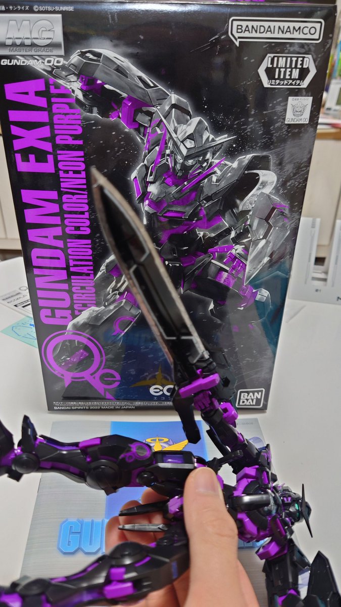 MGエクシアネオンパープル完成! 黒の機体に同じ黒の武装がイメージと違ったんで武装だけ塗装 刃はシルバー、刀身は黒メッキ FF7のバスターソードを意識 #ガンプラ #ガンプラ好きとつながりたい #ガンプラは自由だ #ガンプラの画像貼るとRTされると聞いて