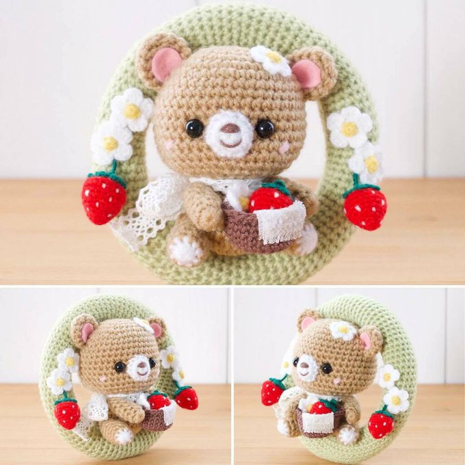 🍓イチゴでドアリース🐻 イチゴ狩りを楽しむ🧸クマちゃんのドアリース💕 う〜ん🎶 🍓( ◍•㉦•◍ )♡ イチゴ食べたい✨ #amigurumi #crafts #crochet #diy #handmade #owndesign #あみぐるみ instagr.am/p/CbCT1zgrIPz/