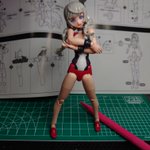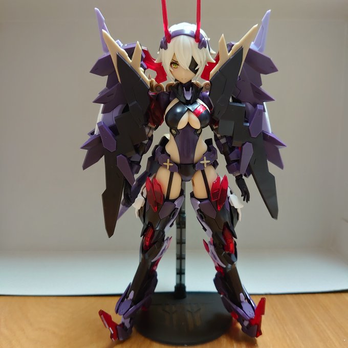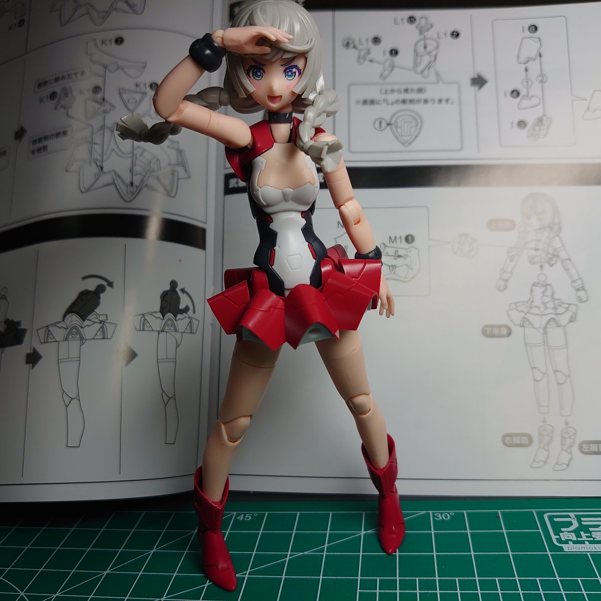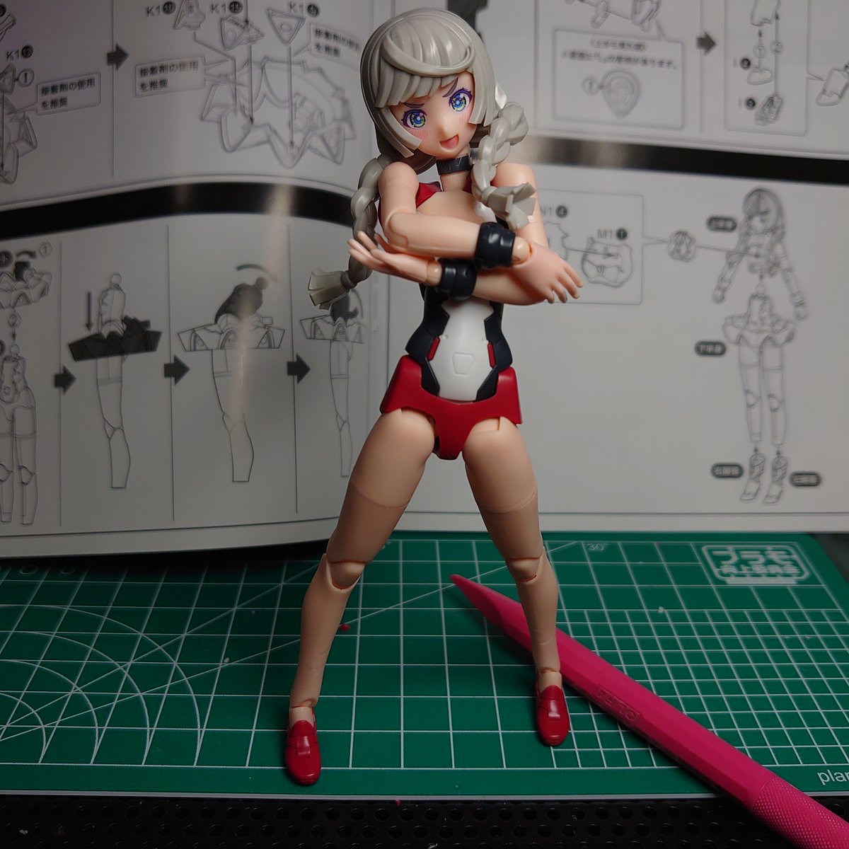 轟雷の予約戦争に負けて、初めて手にしたのはスティレットだった (残っている写真が背景汚いのしか無かった) 改造というか色変えで最初なのはメガミデバイスのランチャー #一番最初に作った美プラ晒そうぜ #メガミデバイス