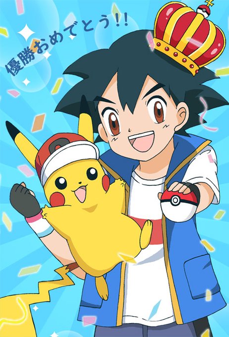 改めて、サトシ優勝おめでとう!昨日のアニポケ見た勢いで描いたサトピカ。とりあえず、夕飯食べながらだったので落ち着いてもう一度感動を味わいたい……!! #サトシ世界チャンピオンおめでとう #アニポケ #pixiv pixiv.net/artworks/10272…