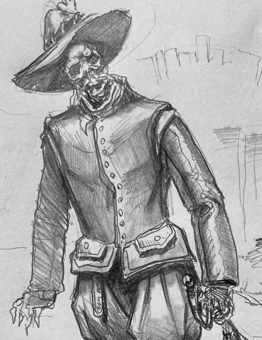 Colonial skeleton dude. I'm beginning to remember how fun it is to doodle before bed. #visdev #graphitesketch #sketch #sketchbook #デッサン #conceptart #characterdesign #pencildrawing #doodle #fantasyart #horrorartwork