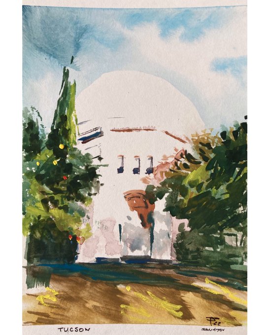 One more dried gouache-as-watercolor paintings. On postcard watercolor paper. Time to get some actual watercolor maybe. #gouachepainting #gouache #cityscapepainting #painting #uofa #tucson #allaprima #watercolor #watercolorpainting #イラスト #traditionalart