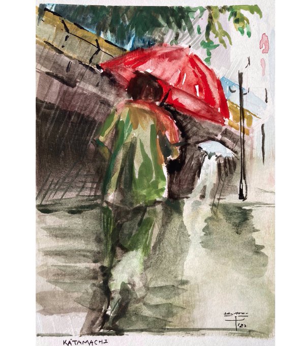 Another attempt at using dried up gouache as watercolor on a little postcard. Still have a ways to go, but at least it looks like one of those summer rainy days. #gouachepainting #gouache #painting #japanart #japanpainting #allaprima #watercolor #watercolorpainting #イラスト