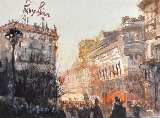 Milan cityscape in watercolor. Starting to use real watercolor paints, with real watercolor brushes, on F4 sized watercolor paper. #aquarelle #cityscapeart #painting #italy #milano #allaprima #watercolor #watercolorpainting #イラスト #水彩画