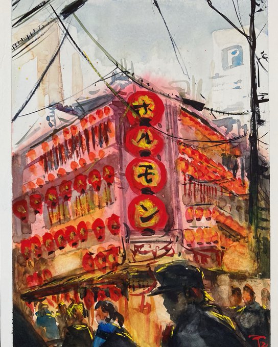 Got some actual watercolor paints! And…lots to learn. Sketch of a festival in Japan on a little postcard. #painting #japanart #japanpainting #allaprima #watercolor #watercolorpainting #水彩画 #イラスト #アート #祭り #artistsoninstagram