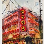 Osaka cityscape in watercolor. F4 paper. #aquarelle #cityscape #painting #japanart #osaka #allaprima #watercolor #watercolorart #イラスト #水彩画 #artistsontwitter