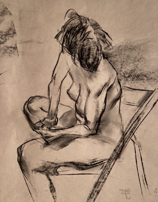 10 min pose from last weekend. Charcoal on wrapping paper. — . . #figuredrawing #lifedrawing #charcoaldrawing #クロッキー #croquis #デッサン人形 #sketch #drawing #traditionalart #figurativeart #artistsontwitter #drymedia