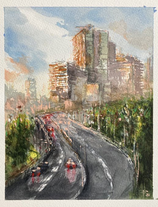 Tokyo cityscape in watercolor. Looking towards Ebisu. F4 paper. #aquarelle #cityscape #painting #japanart #tokyo #allaprima #watercolor #watercolorart #イラスト #水彩画 #ArtistOnTwitter #traditionalart