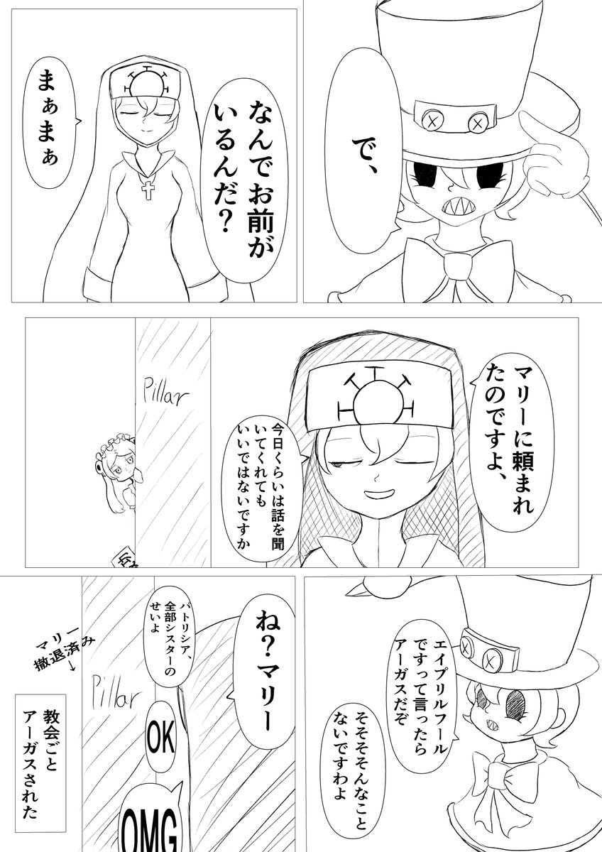 8 35 #スカルガ版深夜の真剣お絵描き60分一本勝負 #Skullgirls1HourDrawing 遅刻&数時間オーバーですが、死ぬほど描けなかった漫画を頑張って描いたので許してください😭 21/04/01 23:33