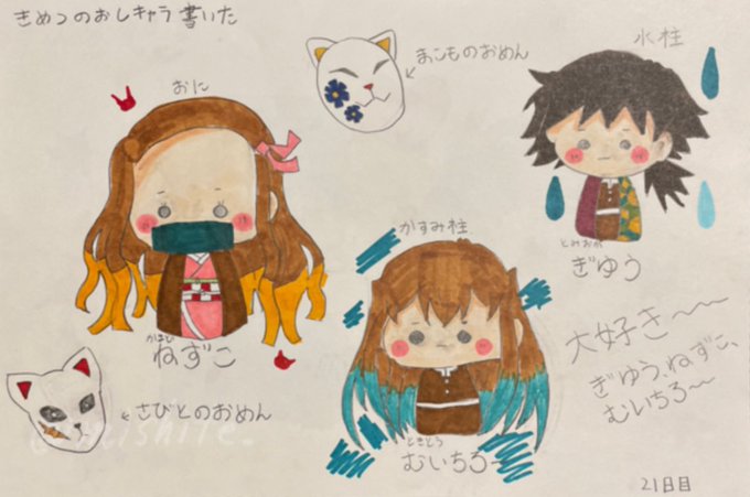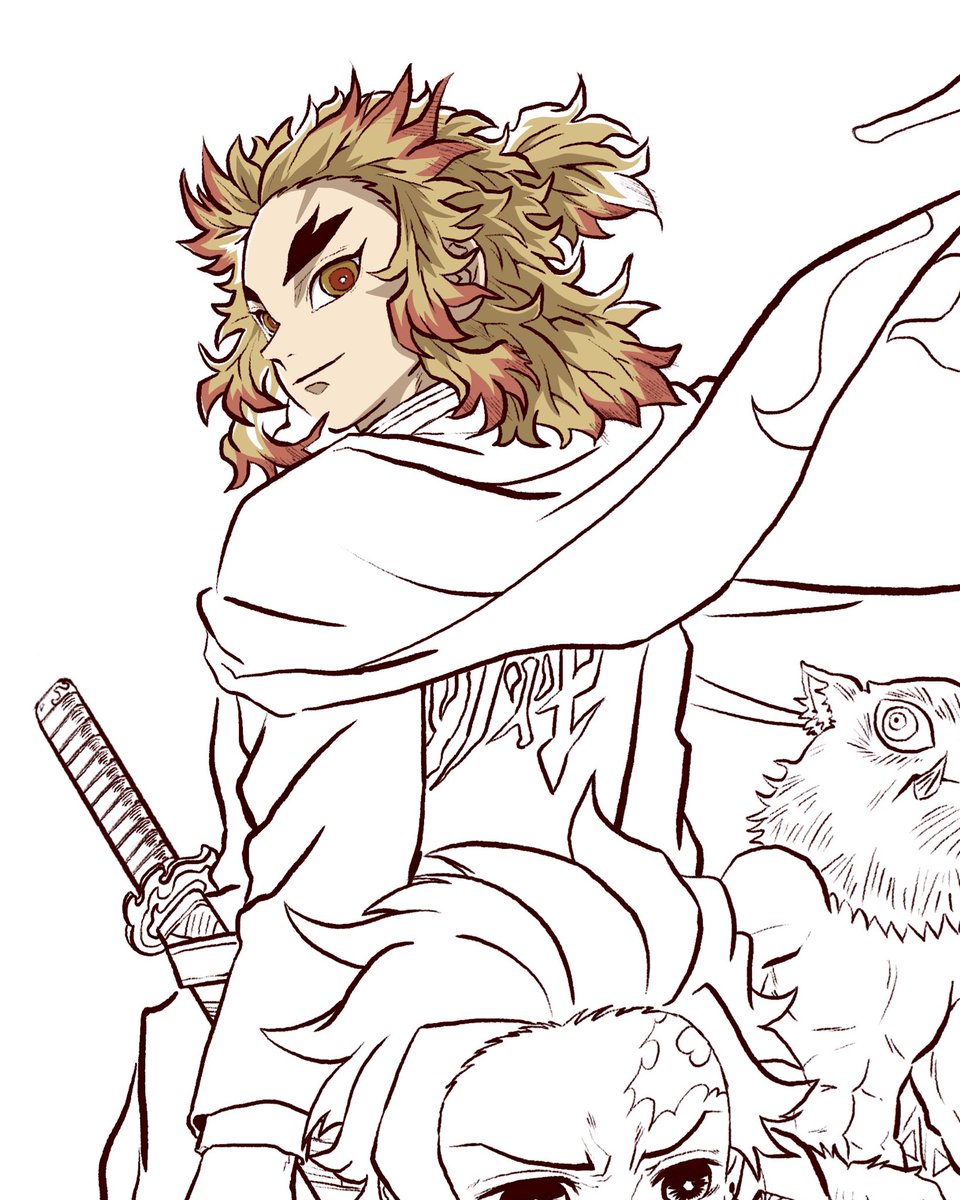 ペン入れ終わった✨ …「塗り絵」ってことで完成にしたいw 色塗り難しそう!!! #鬼滅の刃イラスト #模写 #煉獄杏寿郎イラスト #竈門炭治郎イラスト #嘴平伊之助イラスト #我妻善逸イラスト #無限列車編 #鬼滅の刃