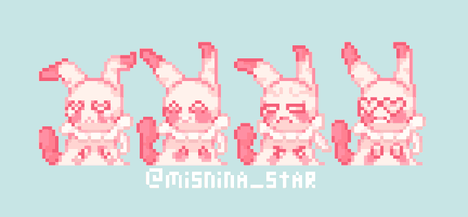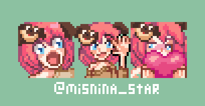 Some of the emotes I made for @MIYA_mars!! Thank you for the commission! For more commission info check out my carrd! misnina.carrd.co #commission #twitchemotes #ドット絵 #pixelart
