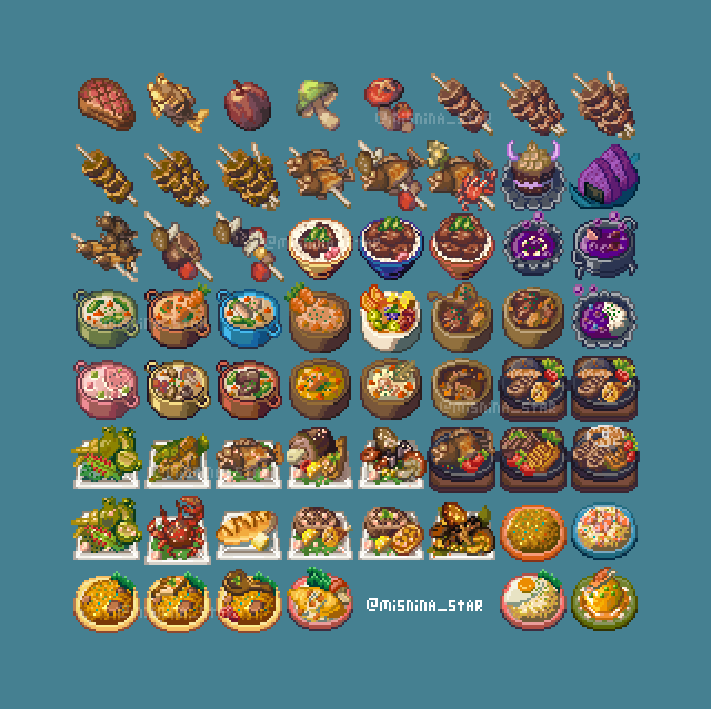I think I'm close to half-way to doing all of the breath of the wild foods!!! There's still a lot to do, but I've built up so many assets for various foods that I can still use in others so maybe it'll go quicker. #pixelart #ドット絵 #Zelda #BreathoftheWild #LegendofZelda