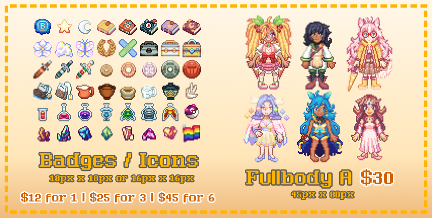 Cautiously out of the very limited commissions! Still only 3 slots at a time! But yeah, I've done tons of emotes and badges and various other pixel art goodness, comm me!!! ⭐RTs are super appreciated!⭐ #commission #commissionsopen #twitchartist #TwitchEmoteArtist #pixelart