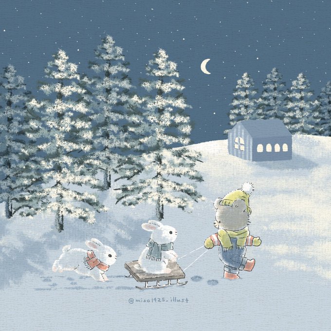 17 192 雪の帰り道❄️ #イラスト #創作イラスト #ゆる画 #ゆるいイラスト #動物イラスト 22/12/30 20:11