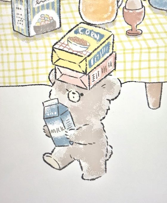 朝ごはん準備中🥣 #イラスト #創作イラスト #ゆる画 #ゆるいイラスト #動物イラスト