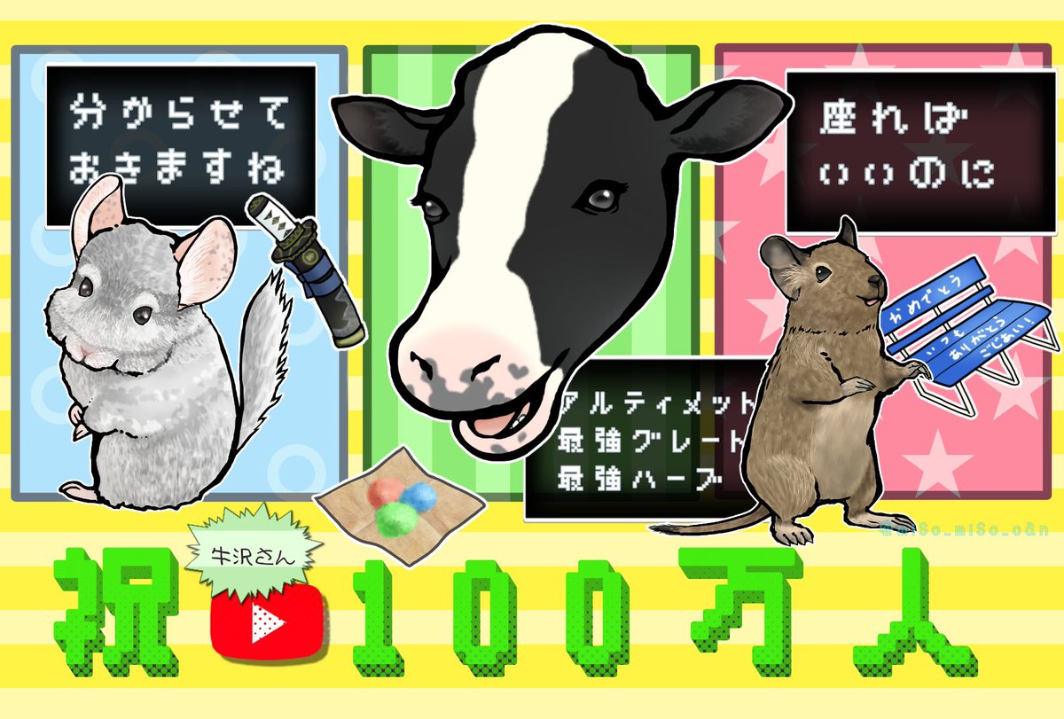 やれめでたや🎂🎉 お誕生日おめでとうございます! いつも素敵な時間をありがとうございます 牛沢さんにとって、「楽しい」や「嬉しい」や「ほっこり」を感じられる1年になりますように #牛沢生誕祭2020 #牛沢誕生祭2020