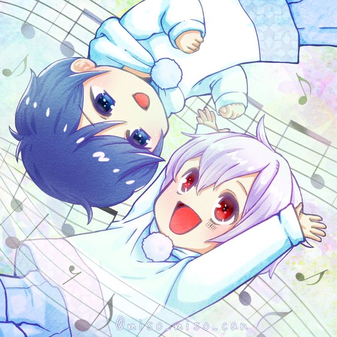 反応ありがとうございまする トト兄弟の絵とお揃いのぽわぽわ玉を背景に入れるか入れないか、最後まで迷ったマン (結局入れた方も載せちゃう) #HAPPYTAJIDAY #INIfanart #INI @official__INI
