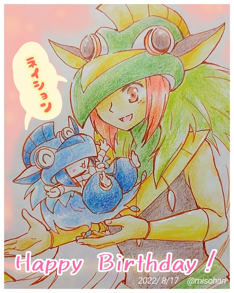 16 45 小坊主とイマジナリーマタ・ハリさん(?)です。おたおめ~! #ポップン版深夜の真剣お絵描き60分一本勝負 22/08/20 23:18