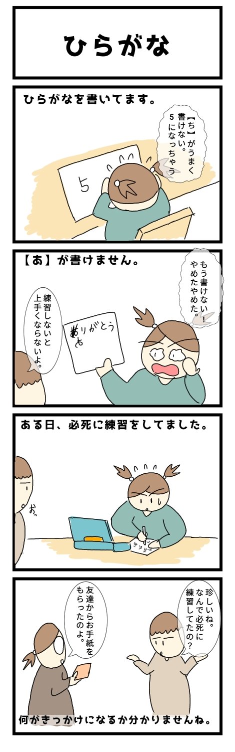 0 8 ひらがなを書こうと頑張ってます。 くるっと回転する【め】や【あ】がなかなか上手くかけません(・・;) #育児 #子育て #育児漫画 #漫画 #イラスト 23/05/19 19:45