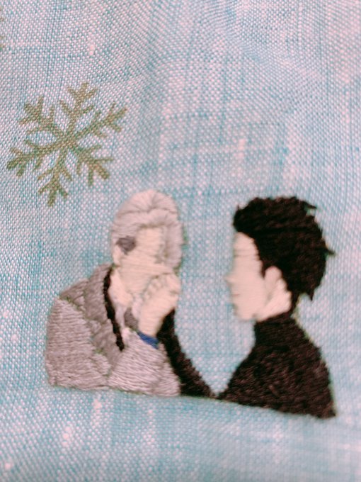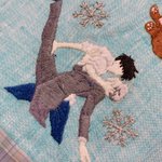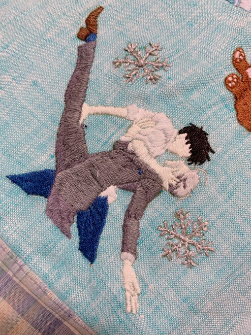 多分今、私がこの世で1番好きなシーンヽ(´▽`)/ #刺繍 #味噌汁刺繍 #ユーリonice 陰影とか色変えたりしたかったけど、センスのない私にはここまでが限界だった…