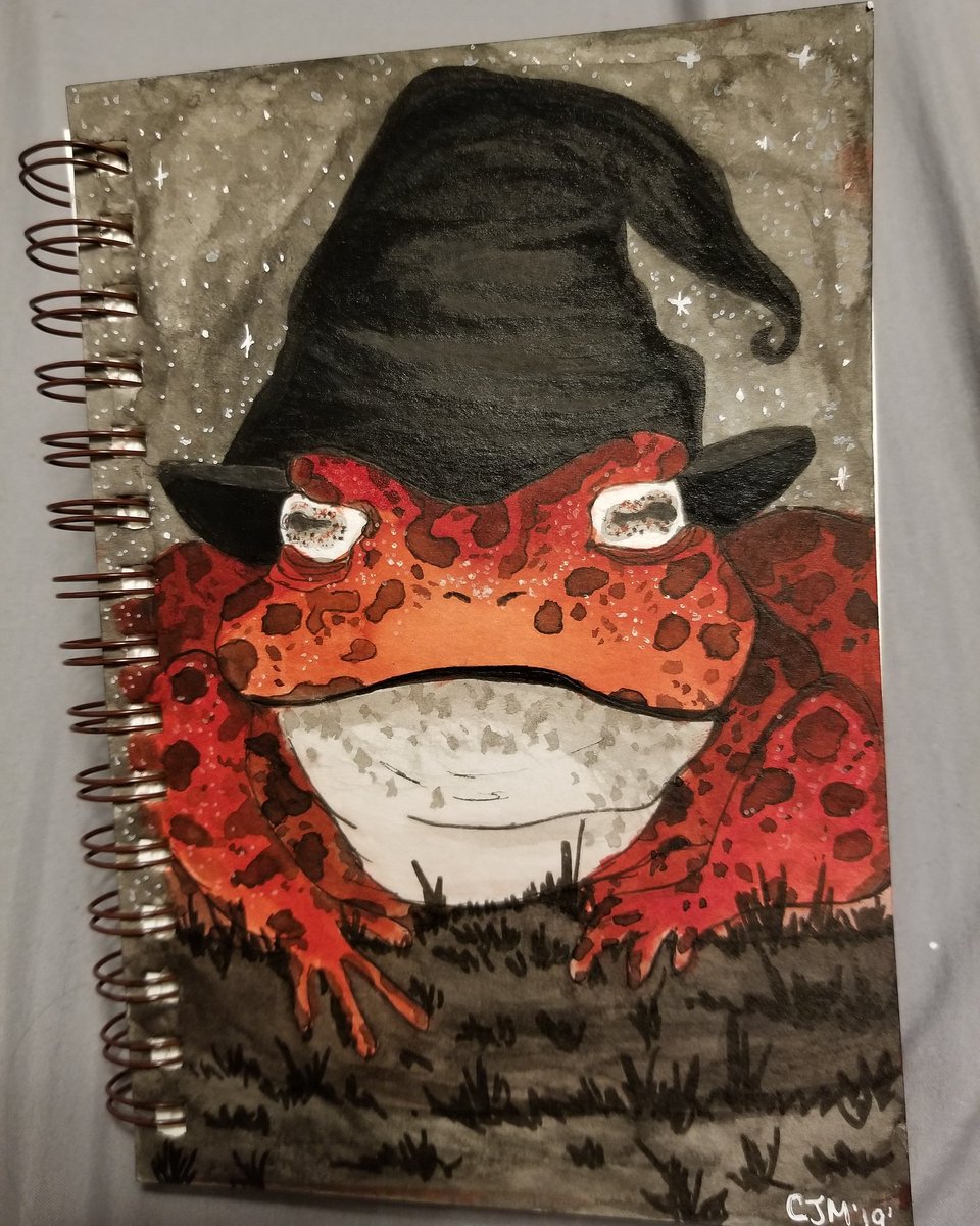 Inktober day 7: Enchanted #inktober #inktober2019 #inktober2019enchanted #inktoberenchanted #inktoberenchanted2019 #inktoberenchantedday7 #inktober2019day7enchanted #enchanted #witchhat #cursed #frog #bullfrog #witchy @inktober @jakeparker