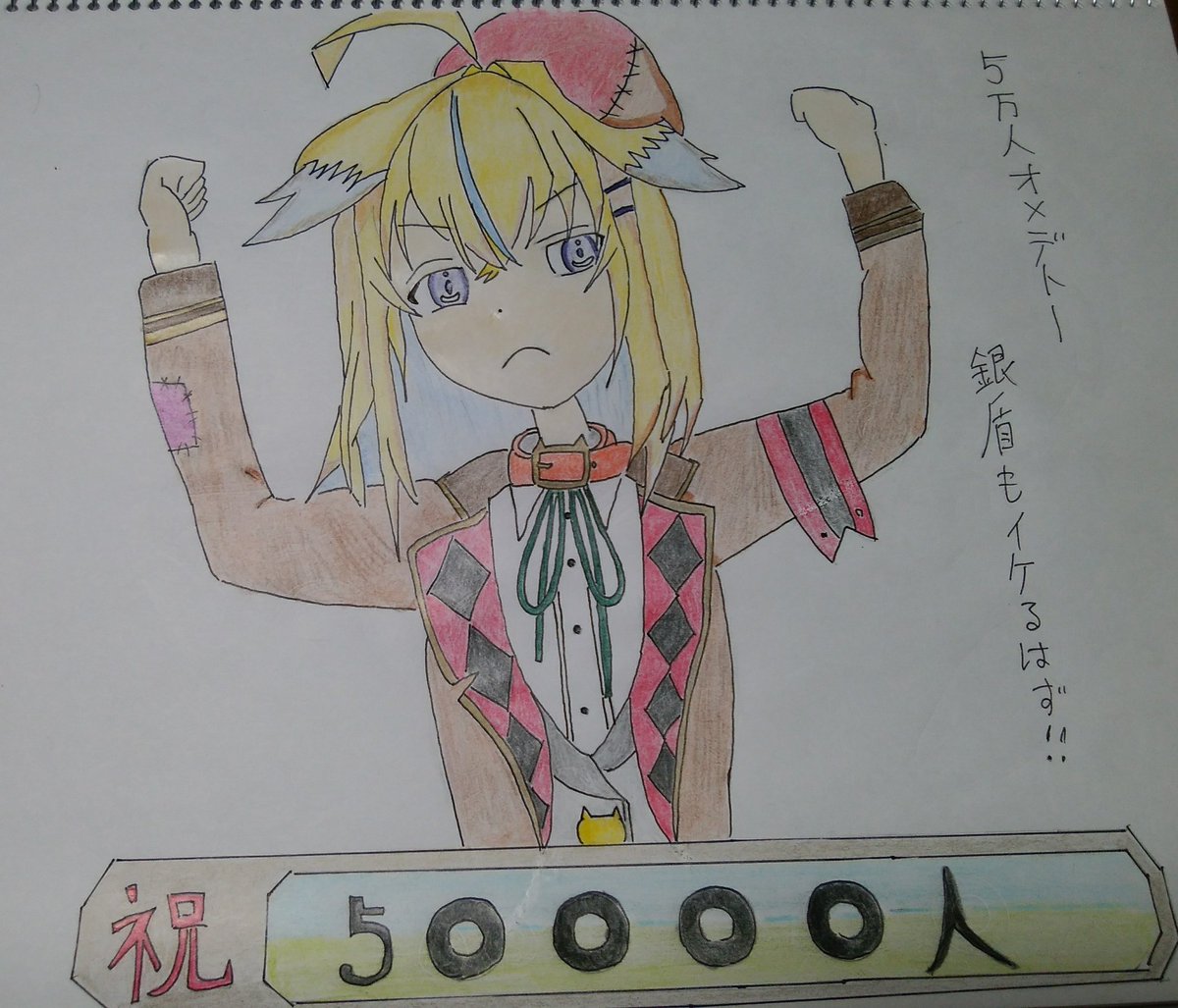 5万人オメデトー!!まだ絵は初心者だから下手なのは許してね😂 #のらーと