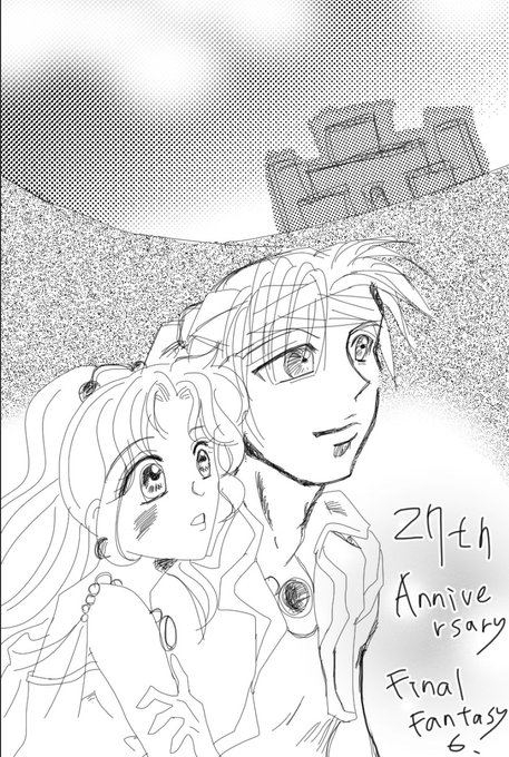 今年は(も?)のんびり描けずにすみません… 一応誕生日祝い絵(よいこのぬり絵にも!笑) 全てはここから始まっていた #ff6_27th_anniversary #FF6_祝27周年 #FF6