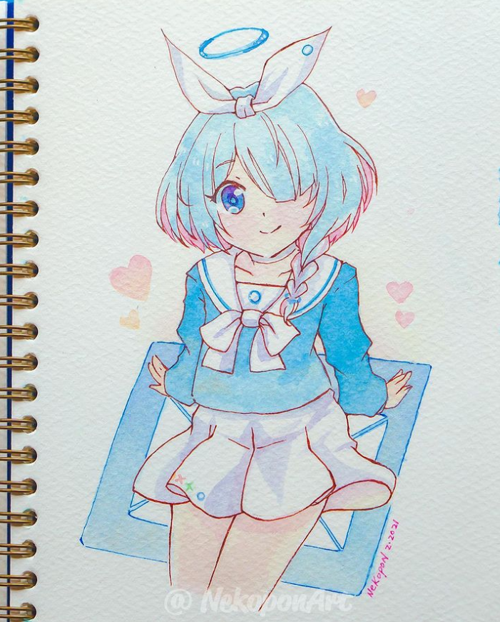 Some throwback art for the EN Grand Opening of #BlueArchive! #aronachan is ready for you! #BlueArchive #BlueArchive_Countdown #FANART #Watercolor #watercolorpainting #AnimeArt