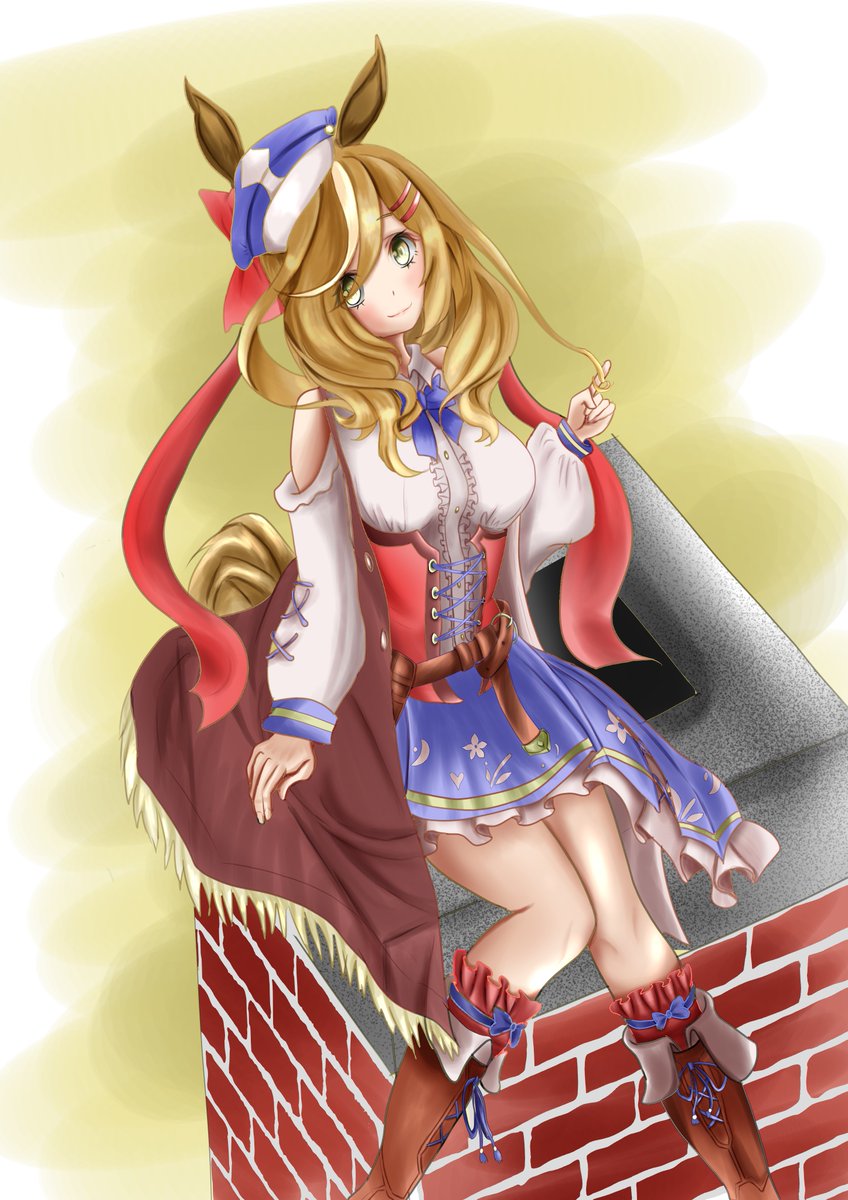 悩みまくった背景ですがやっと浮かんで描きました!! いいアイデアだと思ったけど・・・これ未来の自分の首絞めた気がしてなりませんww ちょっと前のクリーク見てくれれば意味が分かるかと思いますw #イラスト #ウマ娘 #絵師さんとつながりたい #マチカネタンホイザ