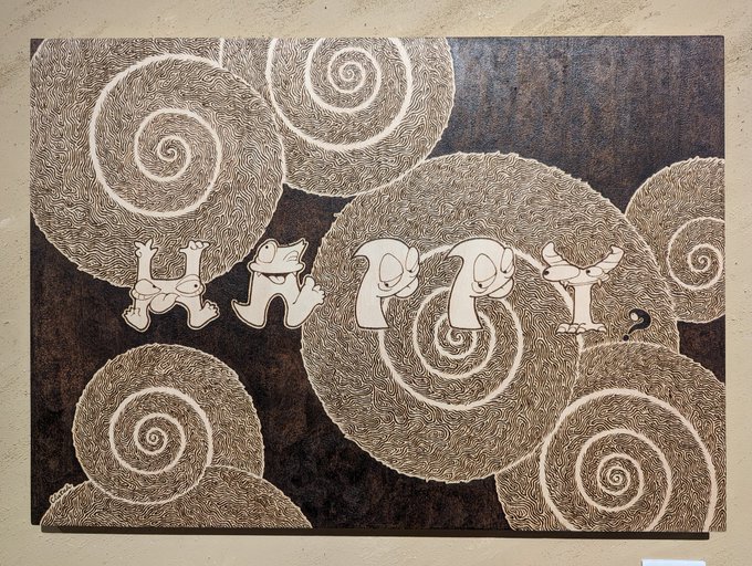 本日も開催! 明日までなので、ぜひぜひご来廊くださいね☺️ #今こそDEkai展 #igu_m_art #pyrographyart #焦がし絵 twitter.com/igu_m_art/stat…