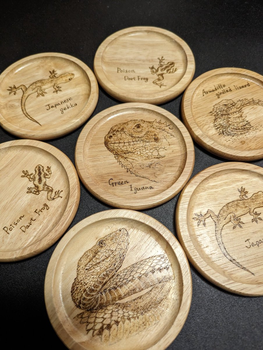 #うろこだらけ展4 4/2から開催ですっ(≧∇≦)b 霞楽箱も少量ですが、参加させていただきます! 1つ1つ焦がして描いた作品達を見に来てくださいね~<( ̄︶ ̄)> #pyrography #焦がし絵 twitter.com/genyou_OMOTE/s…