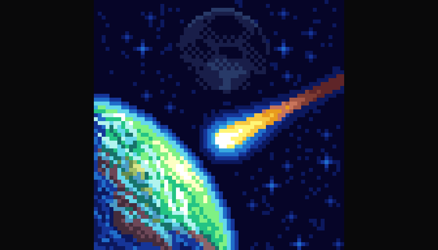 pixeltober 2021 – day six: s p a c e it's all going to be over soon... @PixelDanc3r #pixelart #gameartist #meteor #space #pixeltober