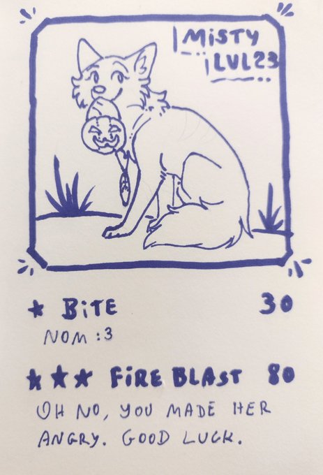 #foxtober days 4 - card and day 5 - lamp! A pokemon style card with Misty holding a pumpkin lamp^^ #Inktober #Inktober2022