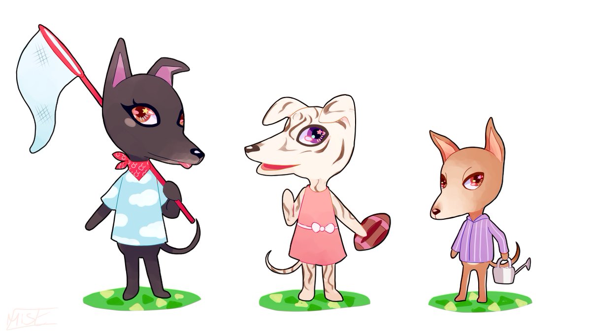 i also wanted to draw my 3 dogs as animal crossing villagers, so,, here u go #ACNH #AnimalCrossingNewHorizons