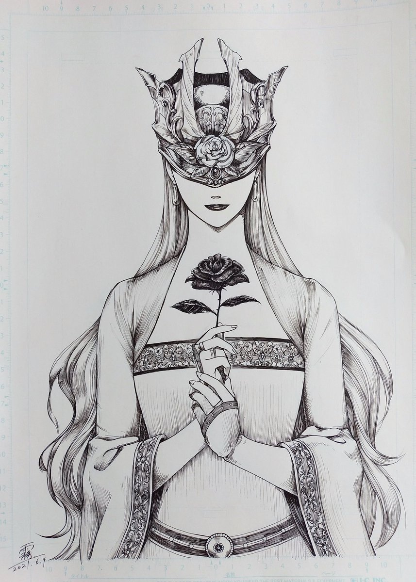 1 9 完成。 #オリジナル #アナログ #モノクロ #ペン画 #薔薇 21/06/05 10:36