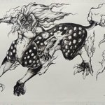 6 57 完成。漫画用の付けペンと面相筆ちょこっと。 #ペン画 #人外 21/08/03 09:34