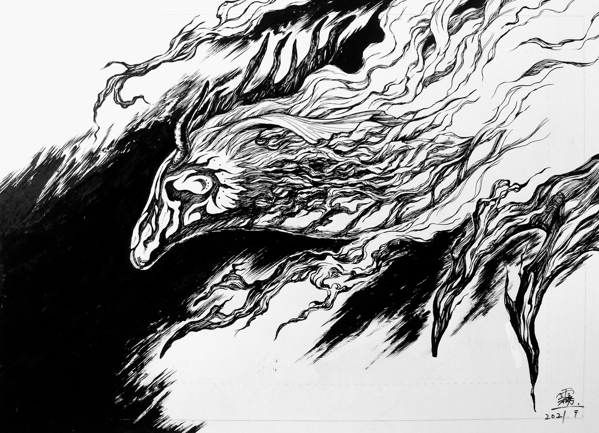 12 72 『麒麟』 #ゴールデンウィークSNS展覧会 #アナログ #モノクロ #ペン画 21/05/01 13:22