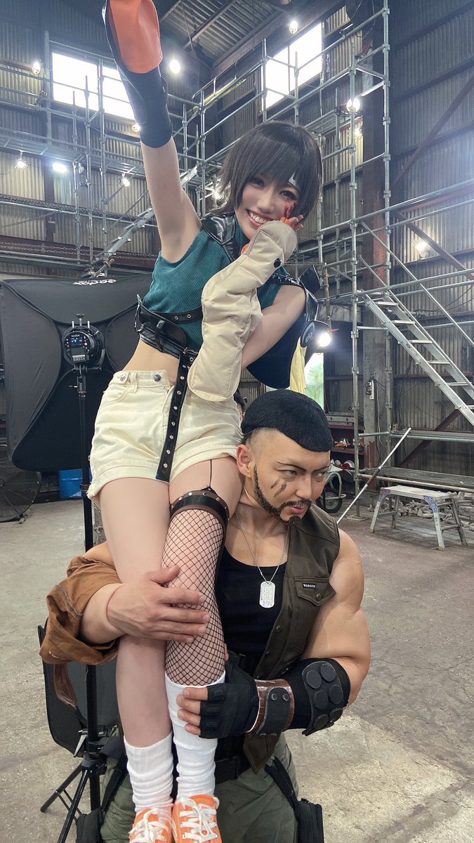【遅速報】 FF7大型併せにユフィちゃんで参加してきました⚔️ メンバー最高すぎて楽しかった😭✨ 血糊と涙メイクもしてきたよっ 写真はバレットタクシーに乗ったユフィのオフショ💪🚕💨 #0604FFVIIR大型