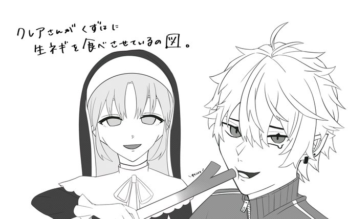 吸血鬼の新たな弱点を攻めるクレアさんと生ネギを押し付けられる葛葉 #KuzuArt #描いたよクレアさん