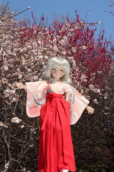 白い梅/衣と【紅い】梅/袴 #深夜前のお題予想ドール撮影 4/16 お題【○○い】 #うちのこに癒され24時間 #今夜のドール撮影120分一本勝負 今夜のお題は【 きめぽーず 】 #深夜のドール撮影60分一本勝負 ※過去