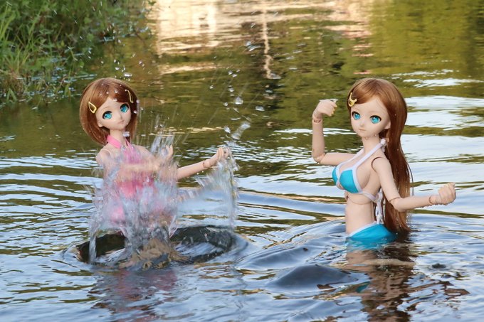 「【えい!】」 「やったな!」 女の子たちの歓声が満ちる水辺をずっと眺めていたい #深夜のドール撮影素敵文1440分1本勝負 2022.9/19分のお題【おくがい】 #深夜前のお題予想ドール撮影 9/19 お題【〇〇!】 #今夜のドール撮影120分一本勝負 今夜のお題は【 みちる】 #うちのこに癒され24時間 ※過去