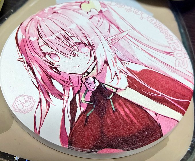 45 153 クレアちゃんのコースターの試し刷り届いたー✨ ちょっと色薄いからもう少し濃くなるように調整して明日20日の夜からBOOTH出そうと思うのでお楽しみに‼️ 21/12/19 19:20