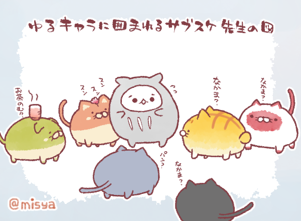 ぱん職人『月曜日なので元気になる絵を…と思ったけど、ネタの在庫が切れているのでサブスケ先生(@sabusuke_t)を描きました』 #にゃんぱん