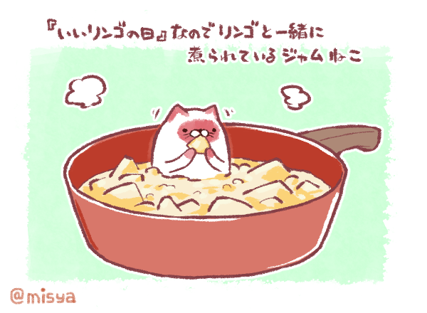 今日は #いいりんごの日 🍎🍎 ジャムねこ入りの美味しいりんごジャムはいかがですか?🐱✨ #ジャムねこ #イラスト